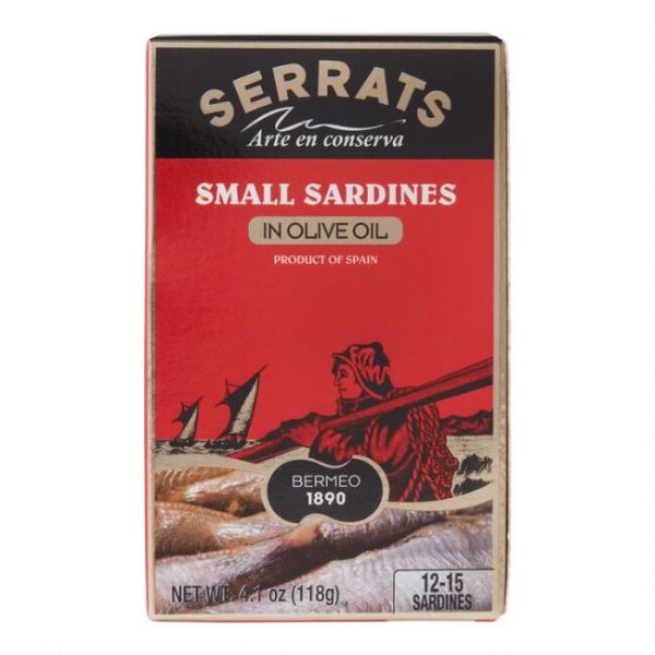 Serrats konzervované sardinky v olivovom oleji, ktoré boli ulovené čerstvé pri severnom pobreží Španielska, sú vždy silne ochutené a jemne šťavnaté. Chutné na Caesar šalátoch, mleté na omáčky na cestoviny a na plochý chlieb, tieto chudé ryby nabité bielkovinami sú všestranné a uspokojujúce s množstvom omega-3.