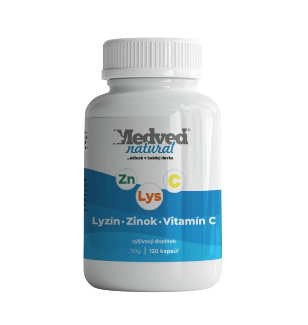 Zloženie: L – Lyzín hydrochlorid, kapsula: hydroxypropylmetylcelulóza, vláknina z Akácie senegálskej (Acacia senegal), vitamín C (kyselina L – askorbová), protihrudkujúca látka: stearan horečnatý, zinok (glukónan zinočnatý).